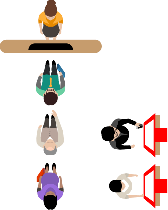 Organisieren der Kundenreihung in Fast-Food-Betrieben. Beschleunigen des Bedienprozesses und Reduktion der Gerätekosten.
